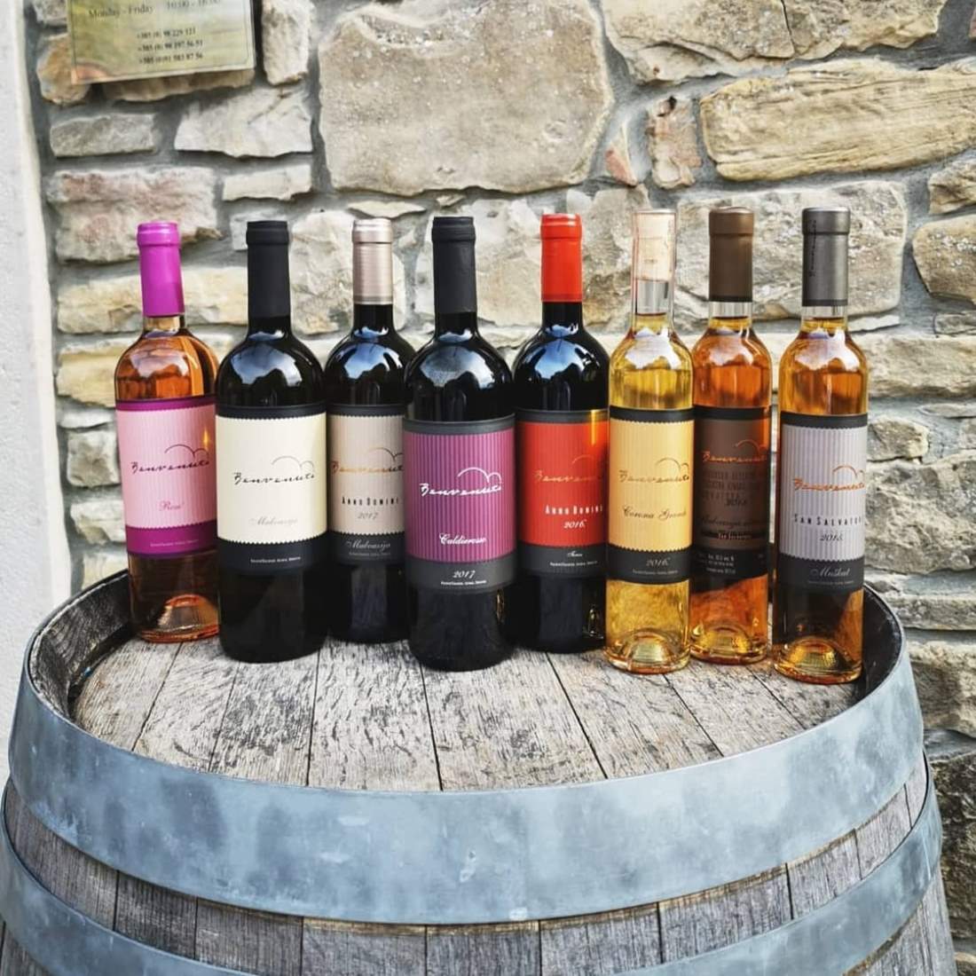 Obitelj Benvenuti njeguje 20 hektara vinograda, od kojih bi istaknule položaj San Salvatore na 400 m n/v. Upravo je taj vinograd podario dvije specifične vinske etikete, Malvaziju San Salvatore i Muškat San Salvatore, vina od prosušenih bobica. Vinarija ukupno ima 8 etiketa, a najzastupljenije su autentične sorte Malvazija i Teran.