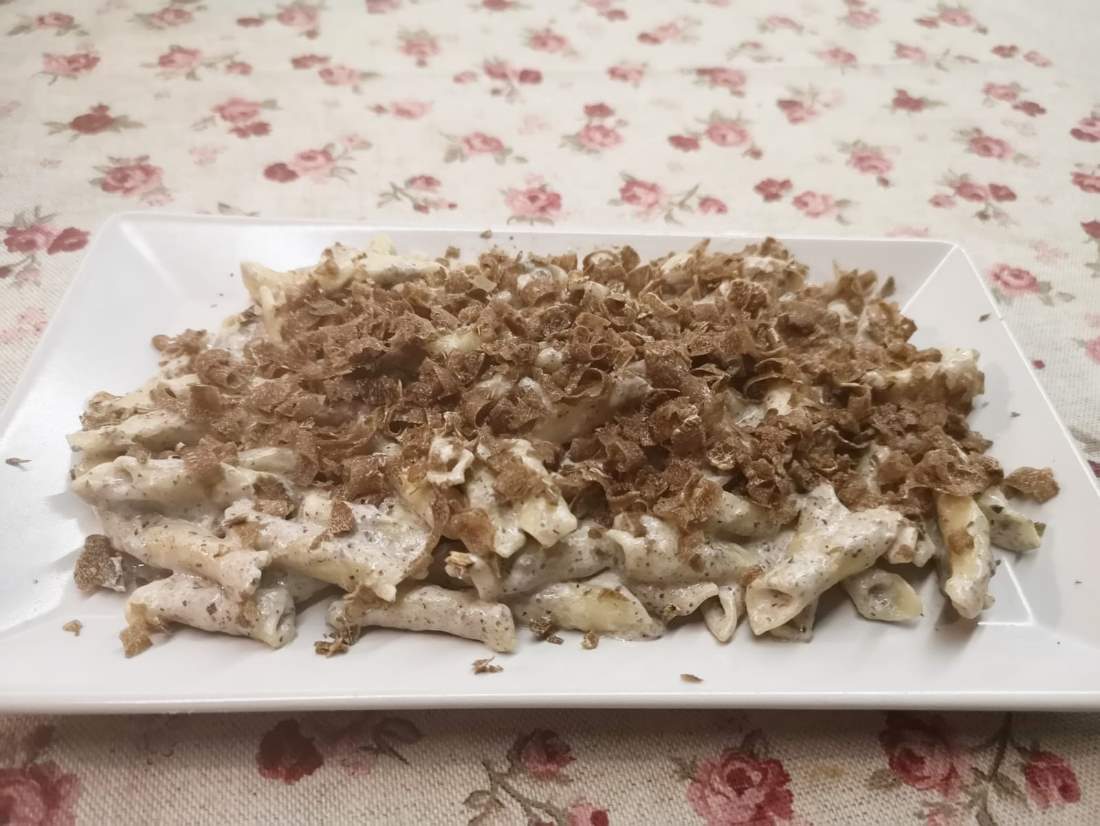 Zatim nam je poslužena neizostavna tradicionalna istarska tjestenina – fuži s tartufima te ravioli punjeni sirom s vrganjima. Porcije tjestenine, koje se u jelovniku navode kao toplo predjelo su zaista obilne te iste mogu zamijeniti glavno jelo ukoliko niste ljubitelji mesnih jela.