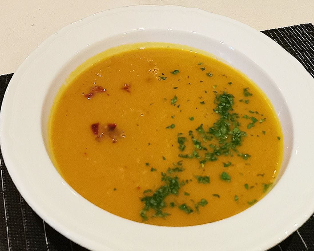 Nakon dobrog pršuta naša je nepca osvojila i krem juha od bundeve upotpunjena hrskavim komadićima pancete. Kremasta juha puna okusa, mirisa i boje ni goste ne ostavlja ravnodušnima. Od jela na žlicu još se nudi goveđa juha, dnevna juha, krem juha od bundeve s crnim tartufom i istarska maneštra s bobićima.